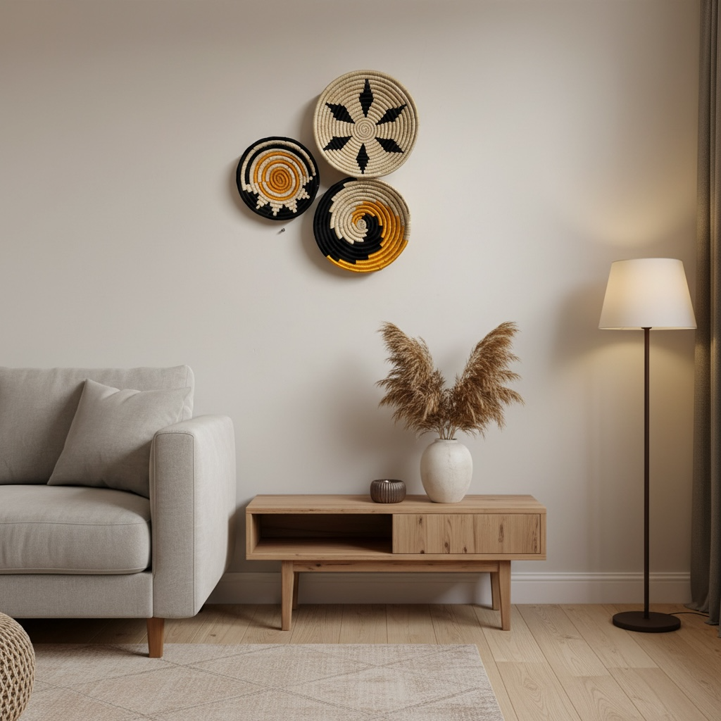 Sabai Grass - Wall Basket Set of 3 - Yellow and Beige