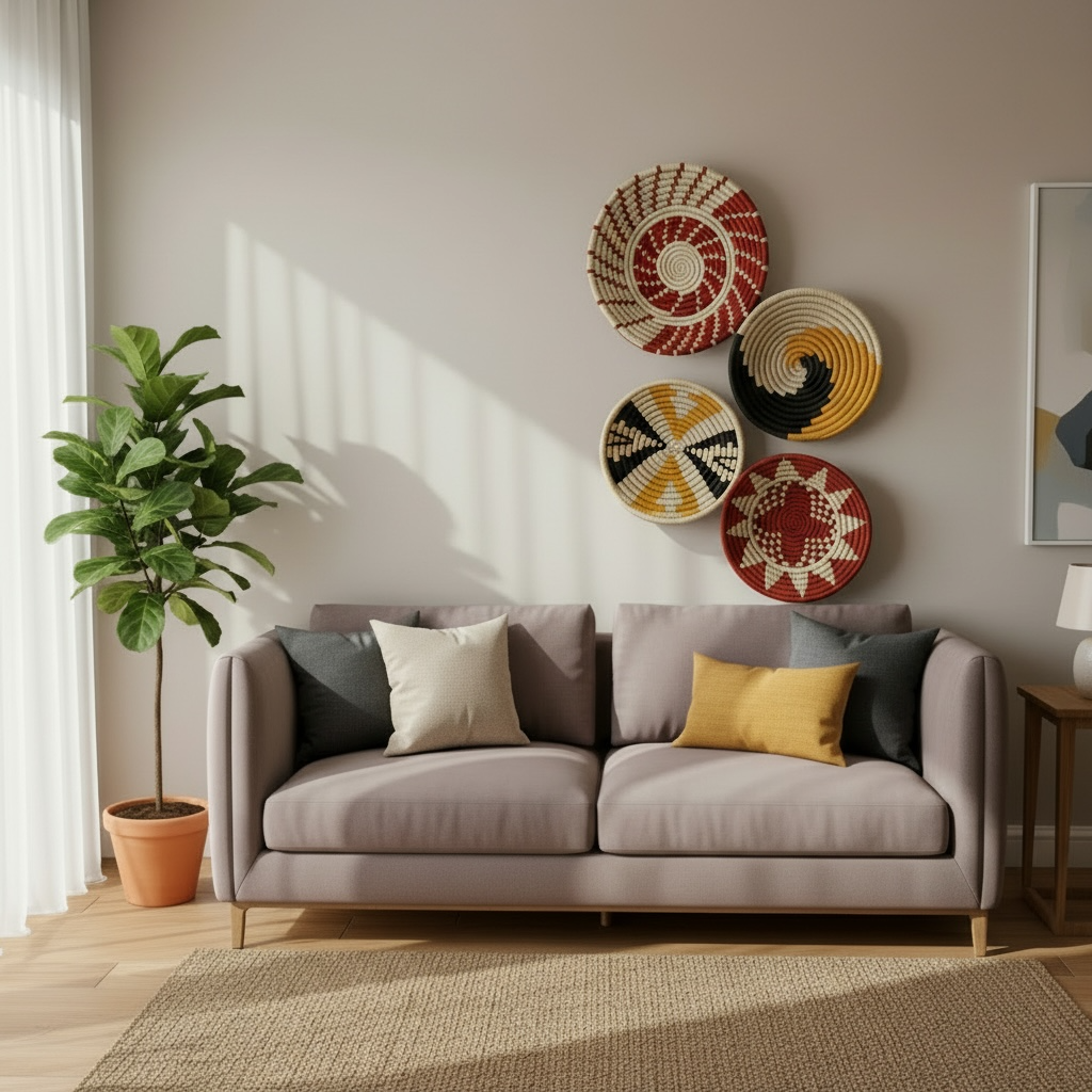 Sabai Grass - Wall Basket Set of 3 - Orange, Black and Beige