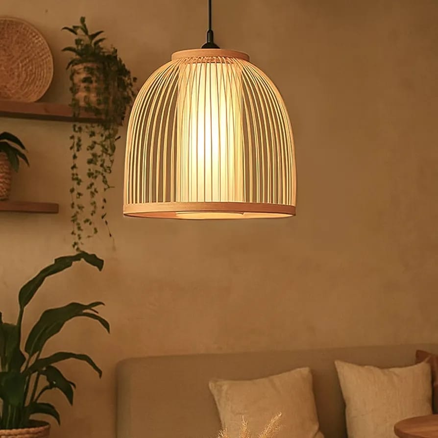 Handwoven Bamboo Cylindrical Pendant Lamp
