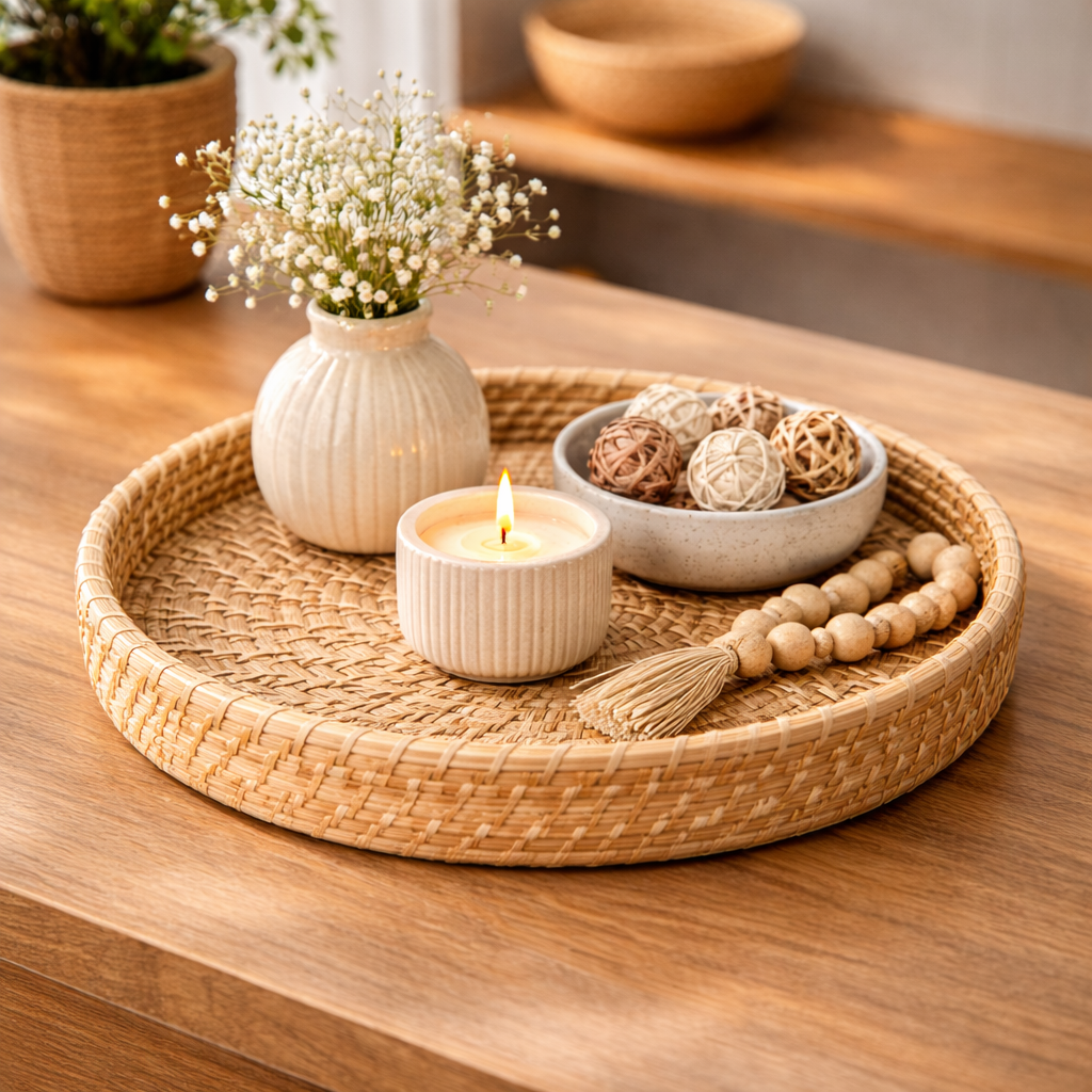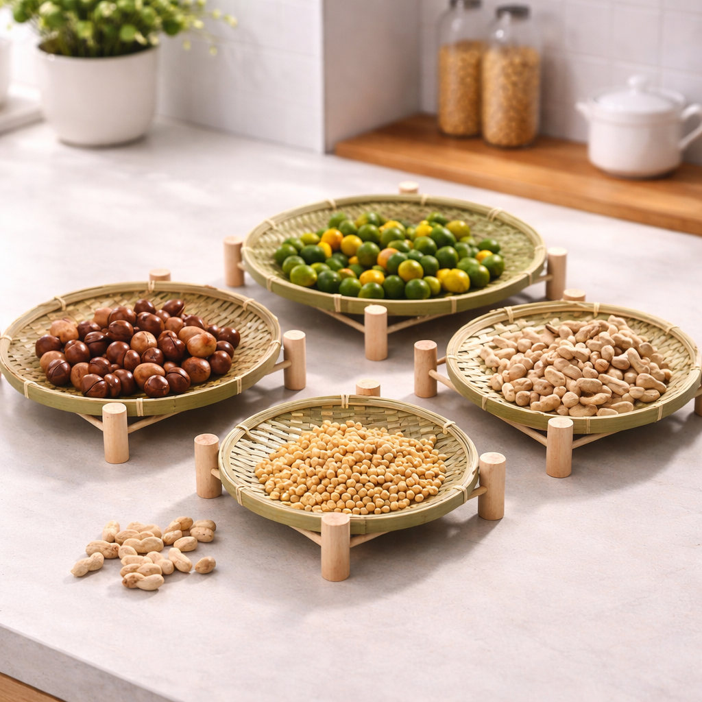 Handwoven Bamboo Round Fruit Tray with Cover Mesh